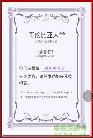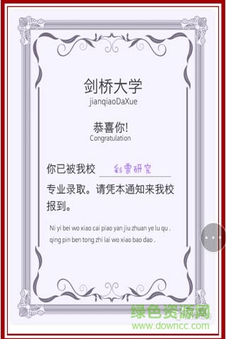 录取通知书h5是一款轻松搞笑的h5游戏,现在来绿色资源网,你就能轻松的抽取你自己的录取通知书,可不要被自己的专业吓到哦,感兴趣的朋友欢迎下载试玩!