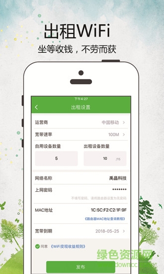wifi变现是一款全新的智能wifi共享平台,轻松出售出租wifi流量共享,实现网络共享上网服务,网络使用稳定流畅。快来绿色资源网下载体验吧!
