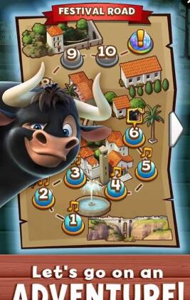 玩家将在游戏中引导强壮的公牛费迪南德和他的朋友们展开精彩的消除冒险!解决各种谜题,在西班牙美丽的风景中,享受三消连击以及跳舞的乐趣!