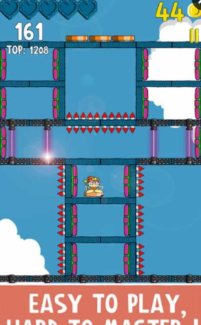 玩家这回要控制角色尽可能多的上楼而不是下楼。游戏中玩家尽能控制觉得跳跃,左右移动会只能通过游戏内的墙壁来改变方向。游戏时,玩家要在上楼的同时躲避路上的陷阱同时不要忘了收集金币来解锁角色。