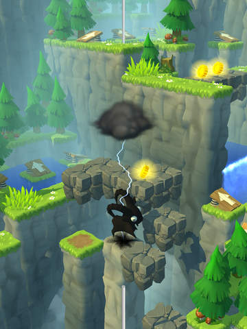 在游戏当中玩家需要让山羊利用一个一个的格子平台向高处攀爬,在操作方面开发商很人性化的为玩家准备了多种不同的方案,大体上就是通过点击和滑动这两种手势进行不同的搭配,玩家可以根据自己的使用习惯在选项当中进行选择,这里就不一一介绍了。玩家点击一次即可让山羊跳到旁边的高一些平台上,然后通过这样的方式不断的高出进发。当到达一定高度之后,写有相应高度的小旗子提示玩家。
