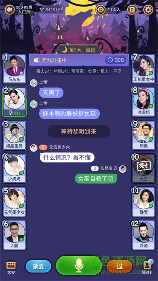 身份:狼人*3 村民*3 预言家 女巫 猎人