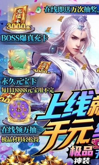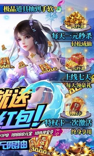 1、上线就送VIP8(上线8000VIP经验,VIP第五关开启,可手动升级至VIP8)、1000元大红包(直接在背包中查看)、188寻宝令(直接在背包中查看)、元宝28888、铜币188W、入门礼包(内有66w铜币。