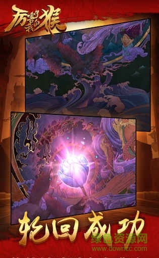 当玩家觉得当前关卡难度较高时,玩家可以让大圣选择转生,在一次次转生中不断强化大圣的属性,通过转生可以获得魂玉和宝箱。魂玉可以升级大圣的神器如意金箍棒。