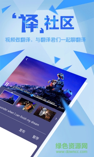 译视界不只有双语短视频,更是交流互动的翻译社区。用户可线上参与视频翻译,字幕翻译大神入驻指导交流,大家一起互动译出精彩世界!