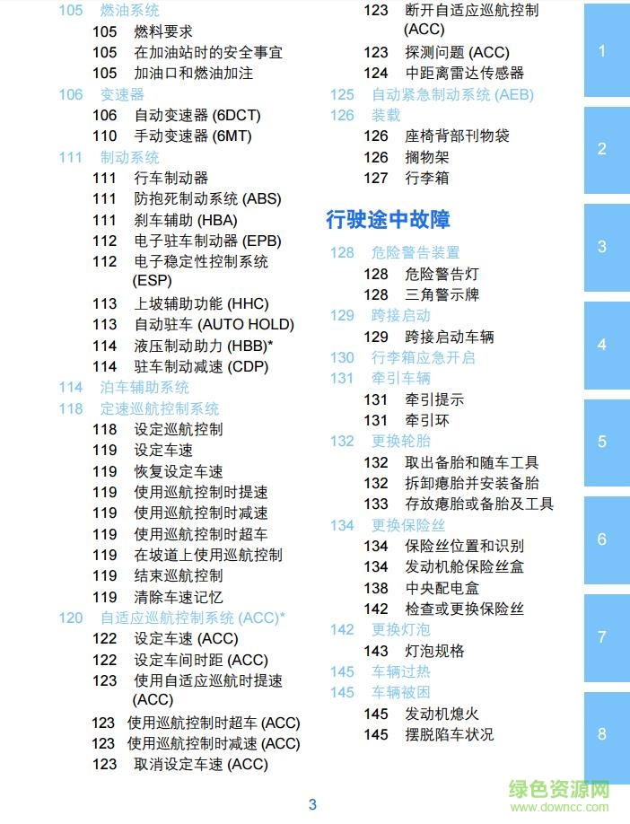 3. 请使用本用户手册推荐的油、液,按照 《保修保养手册》要求进行保养,将有效 延长车辆的使用寿命。