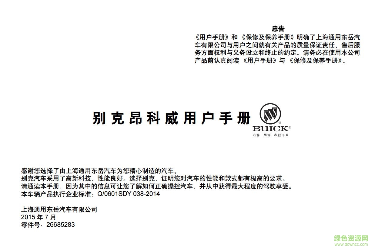 2017款昂科威28t使用说明书旨在提供用户们昂科威精英版用户手册让你在汽车使用的过程中能够发现众多隐藏的功能,在各项功能运用的时候能够获得最佳的使用效果,快来绿色资源网下载吧!
