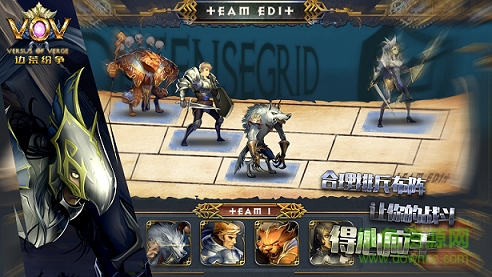 4.阵型系统:玩家要从雇佣的单位中选择4人及战场道具在3×12的地形中自由配置、组成阵型,进入战斗后即使用该阵型开场,此外战场上还可设置各类装置,包括急救箱、护栏、魔法武器、攻城器械与陷阱等。