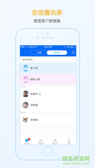 1.产品功能层面-新增客户通讯录功能,将客户进行清晰准确地分类,按类别方便地进行查找,帮助销售顾问更轻松地管理客户;