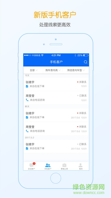 3.易湃助手中的商机中心迁移至 “我的客户”中,销售顾问可以及时且有针对性地根据线索内容与客户对接,极大地提高了服务效率和成交可能性。