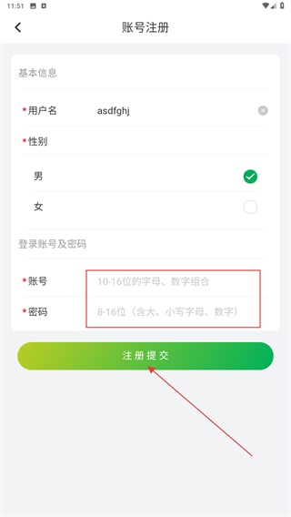3、再输入账号、密码后,点击注册提交的按钮即可。