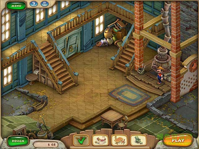 游戏采用了模拟类加找茬的玩法,使得整个游戏的可玩性加强了许多。玩家需要通过在找茬游戏中已最快的速度找到指定的物品,获得金币,然后再回到谷仓内花费一定的钱装修整个谷仓。最开始的破旧谷仓。