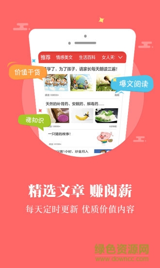 有文共赏app是一款阅读赚钱app,在这里用户不仅能够读到非常多优质文章,还能赚取相应佣金,一举两得,心动不如行动,欢迎到绿色资源网下载使用!