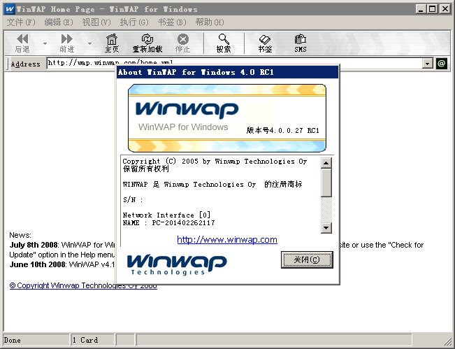 近期在做wap的测试,一直在找工具,发现了winwap4.0的,共享 WinWAP 是一种可阅读无线标识语言(wml)格式数据的浏览器。 此浏览器的外观和功能非常类似于任何标准的 html 浏览器,但是它阅读的并不是超文本链接标识语言 (html),而是专门为 wml 设计的。