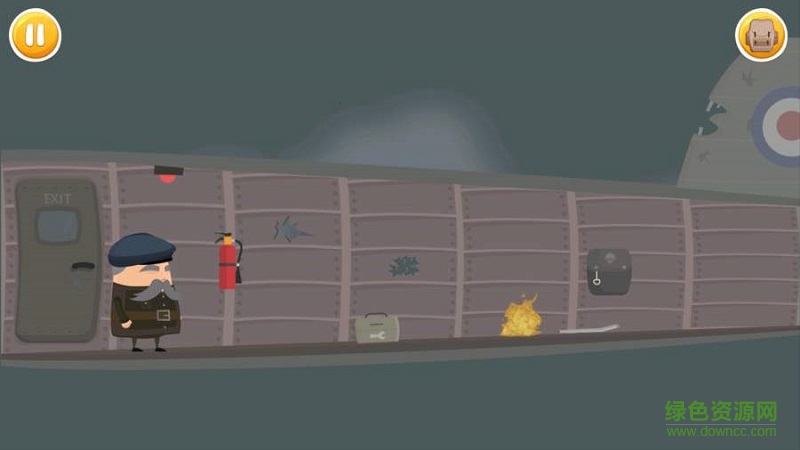 跳过剧情后发现在飞机上,拿灭火器跟工具箱,点右上角背包打开点灭火器再点火,然后拿跳伞包跟地上铁棍,点螺丝刀再点铁棍结合,对exit门用撬棍,再点跳伞包点人物自己背上背包最后点门,过关