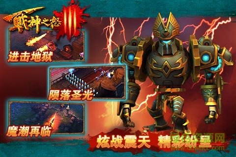 《战神之怒3》是一款手机游戏,采用弱剧情,由每个小关卡的任务进行引导,并且不同的小关卡玩法和任务相对独立。有血脉贲张的战斗画面、拳拳到肉的打击感以及让人叹为观止的游戏画面。游戏基于虚幻3引擎开发,以《山海经》为背景,带玩家解读震撼人心的上古蛮荒神话,领略震撼人心的中国上古神话精美画面及游戏互动表现。