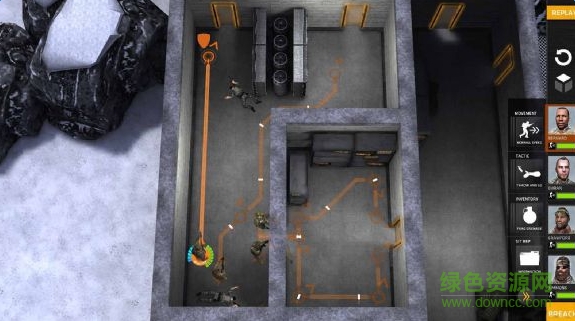 这款游戏很好的将一场战斗所需要策略性展示给了玩家,游戏中玩家能很轻易的感受到。一个团队的战斗并不仅仅是无畏冲锋,配合有序,将大大减少己方的伤亡,让胜利的天平大大的己方靠拢。游戏开始后玩家可以选择4个不同的兵种组合成自己的小队,来完成当前任务。游戏操作简单,点击由右侧单位头像即可选中单位,选中单位后地面上会显示当前单位可移动范围,玩家可以让每一个单位移动到制定位置,以及指定他们的攻击方向。