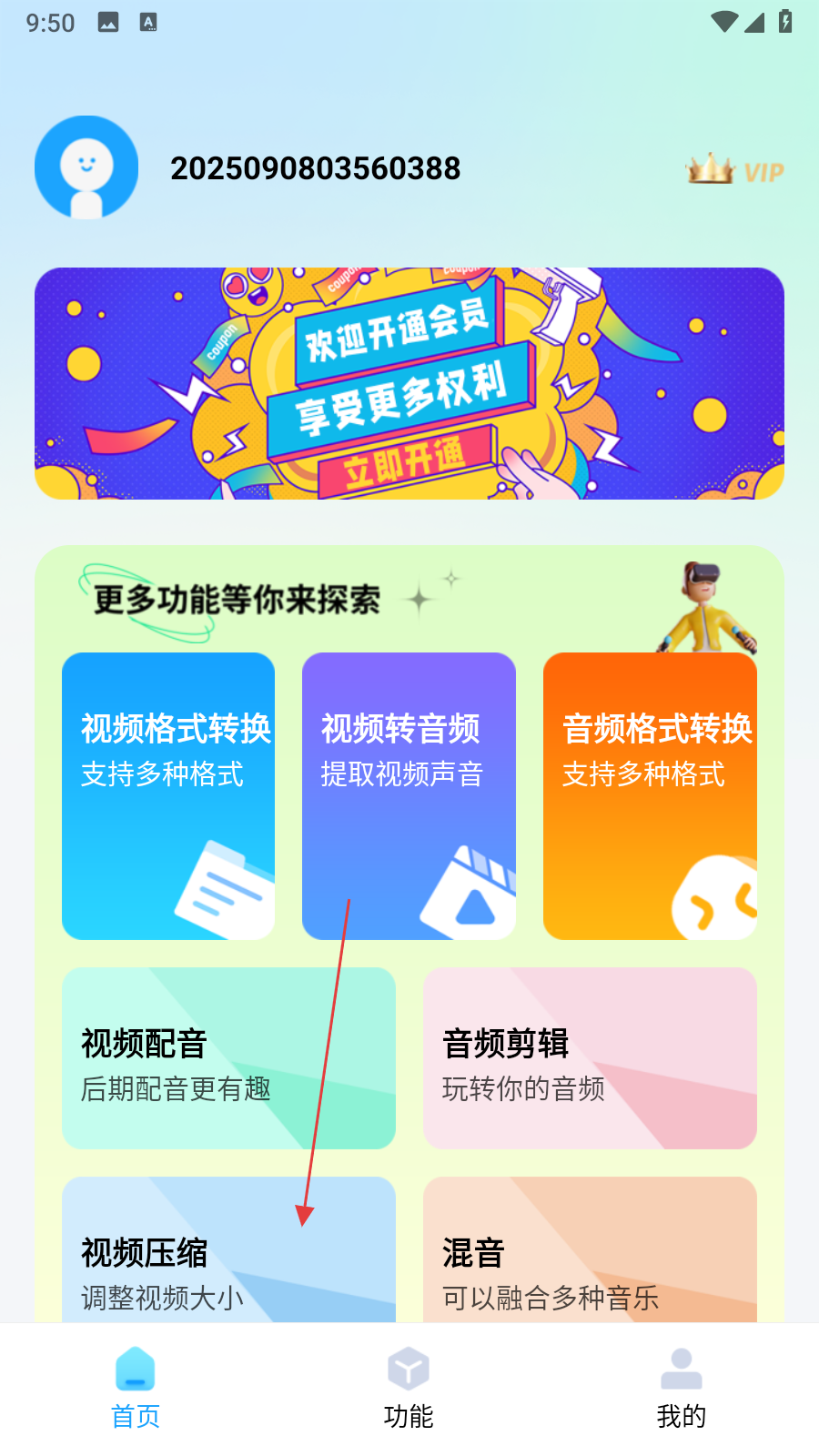 1、打开格式转换器APP,在首页点击视频压缩功能模块,进入视频选择界面。