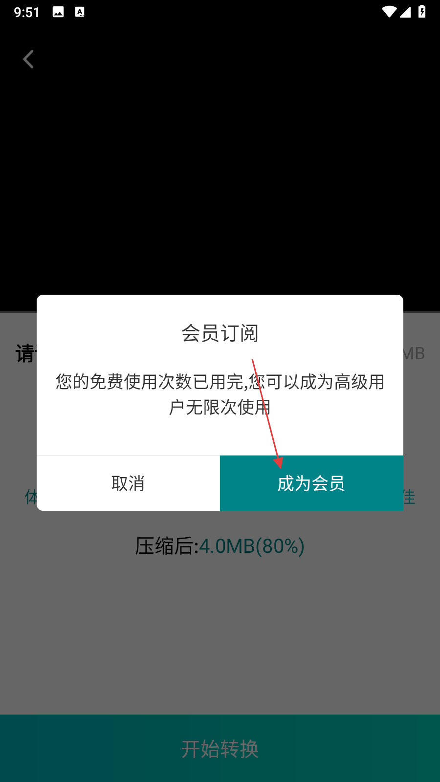 4、若免费使用次数已用完,会弹出会员订阅提示框,可根据需求选择成为会员开通会员后无限次使用。
