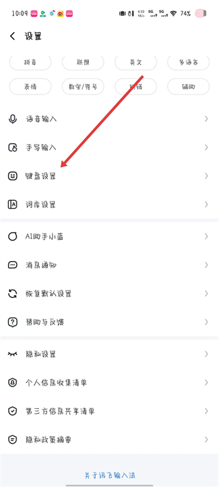 2、在设置页面中,找到键盘设置选项并点击,进入键盘设置界面。