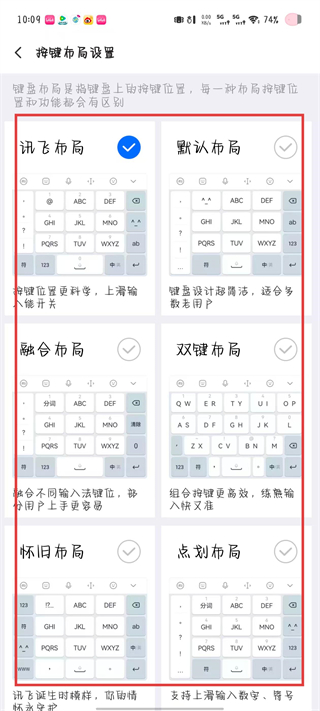 4、在键盘布局选择页面,选择想要的布局,点击即可完成切换。