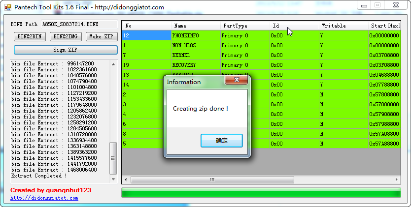 一次偶然的机会,与越南的quangnhut123进行交流,我的PantechTools在越南竟然有了英文修改版……令我十分惊讶,也使我意识到技术交流的重要,于是我与quangnhut123交换了源代码。 这篇文章要推荐一个来自越南的工具Pantech_Tool_Kits,这个工具的可以自动地把binx解压并制作成卡刷包,实际的步骤比较多binx->bin->img->zip,但这个工具可以自动地完成这些步骤,所以十分方便。这个工具的编写者正是来自越南的quangnhut123。