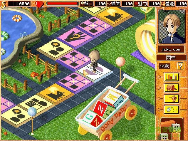 在高三的最后一个回合,主角必须面临考大学。如果答对的题目在六道以下(不包括六道)主角就进入无业的大地图,在此修炼一段时间再考大学。本人认为无业是个好地方,因为那里有很多好用的神只和大家都喜欢的“start”格。