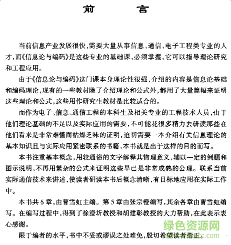 信息论与编码第二版是一本通信领域的图书,有需要的朋友不要错过了,可以学习到信息论的相关知识,还等什么,快约上你的小伙伴,一起来绿色资源网下载使用吧!