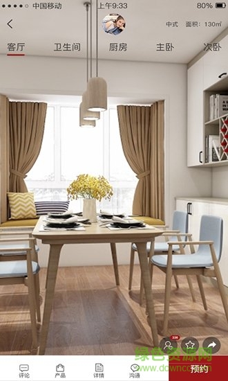 一键预约:用户在商城首页进行快速的预约下单,通过即时通讯工具,足不出户预约家居顾问和设计师,获得上门测量、设计,上传设计效果服务。