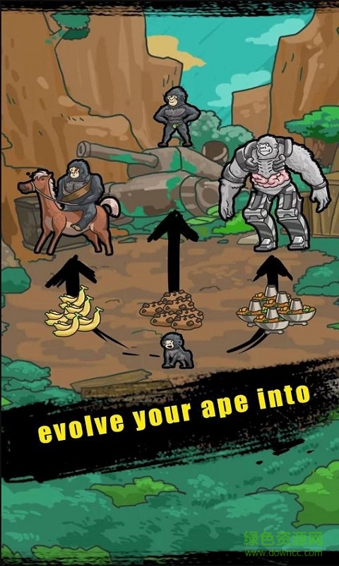 猿人之进化世界(Apes Evolution World)是一款RPG类猿人进化生存手机游戏。培育你的猿人,让他们在人类重重压迫中求存,亲睹猿人科技的演进,重新掌握自己的命运,奇妙的猿人进化,达尔文也为之惊讶叹息,根据进化手册推算喂食比例,发掘进化新路线。以小游戏轻松抓取更多食物资源。为了响应玩家们的需求,我们将该游戏已为免谷歌、无广告、无限金币钻石版,玩家们可以无限制的使用游戏中的金币和钻石,放心的使用金币钻石来购买或兑换武器装备和提升自己的游戏等级等自己所需的物品。