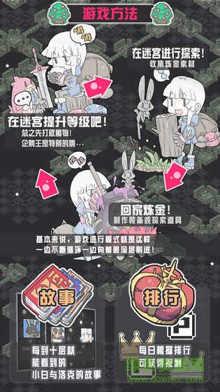 操作炼金术师小白在地下迷宫中寻找素材,合成各种装备和道具吧!