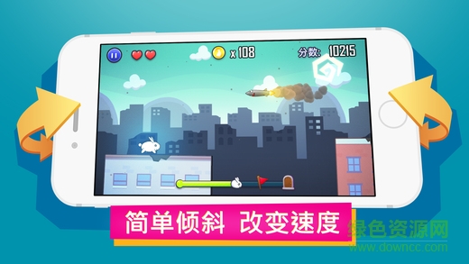 走吧,跳吧,回避吧!真正上瘾的横向跑酷游戏,今天就在你手中!兔纸后乐园正受到强大火力攻击,疯狂的机器穷追猛打,可爱的兔纸们难以幸免,它成为了族群的希望。最后的兔纸.......做个兔纸真英雄,为自由正义而奔走,兔纸后乐园大反击!比传统横向跑酷游戏更创新的玩法。只需要单点画面令小兔跳起,同时左右倾侧手机来减慢或加快小兔速度以避开敌人以获取更高分数。