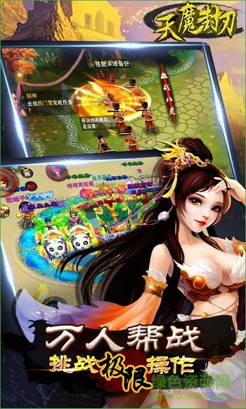 天魔封刃是一款超好玩的仙侠题材的角色扮演手游,游戏拥有超真实的玩法特性,为你带来了一次精彩的游戏玩法体验,在游戏中超真实的打击体验让你爽到不行,喜欢就赶快来绿色资源网下载试玩吧!