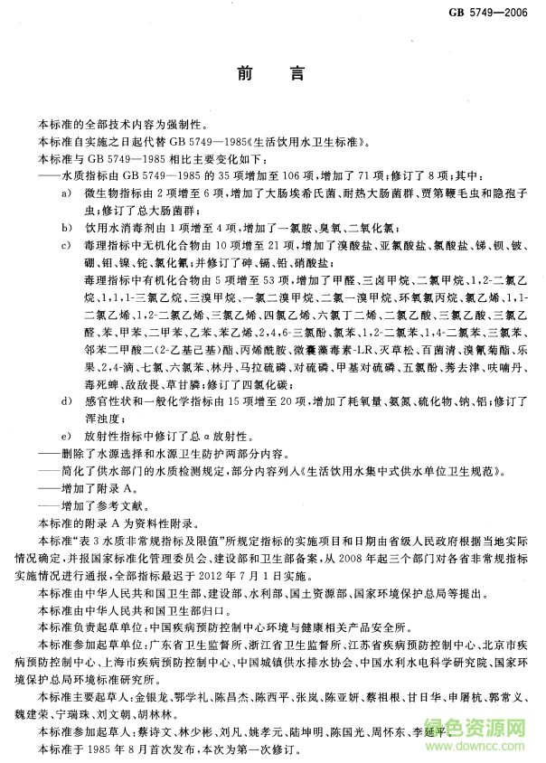gb5749 2006即为国家生活饮水卫生标准体系,生活用水各项实数值指标数据精准,在线阅读对比时刻保证用水卫生安全。快来绿色资源网下载体验吧!