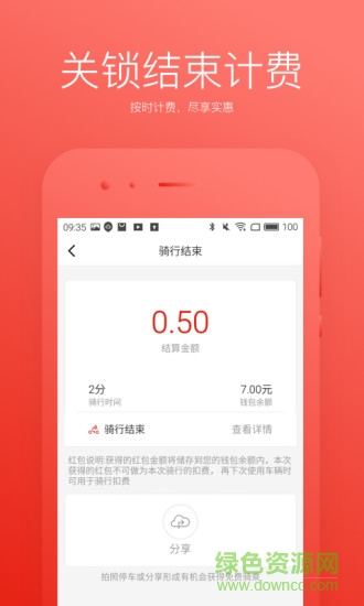 4. 一秒落锁结束行程,智能系统计费自动完成