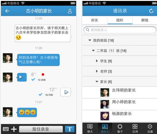完整的组织架构,实名制用户认证,班级通讯录一目了然,沟通随时随地;