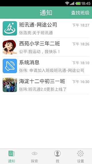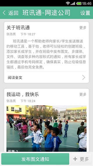 班讯通app是一款教育学习交流软件,软件可以帮助老师向家长/学生发送推送的班级通知,基于他,老师可以轻松的创建班级,添加家长或学生,并在班级中发布图文、多媒体、文件、调查等多种内容形式的通知,所有家长或学生都通过手机号码绑定,确保真实,防止垃圾信息骚扰,最后他完全免费。