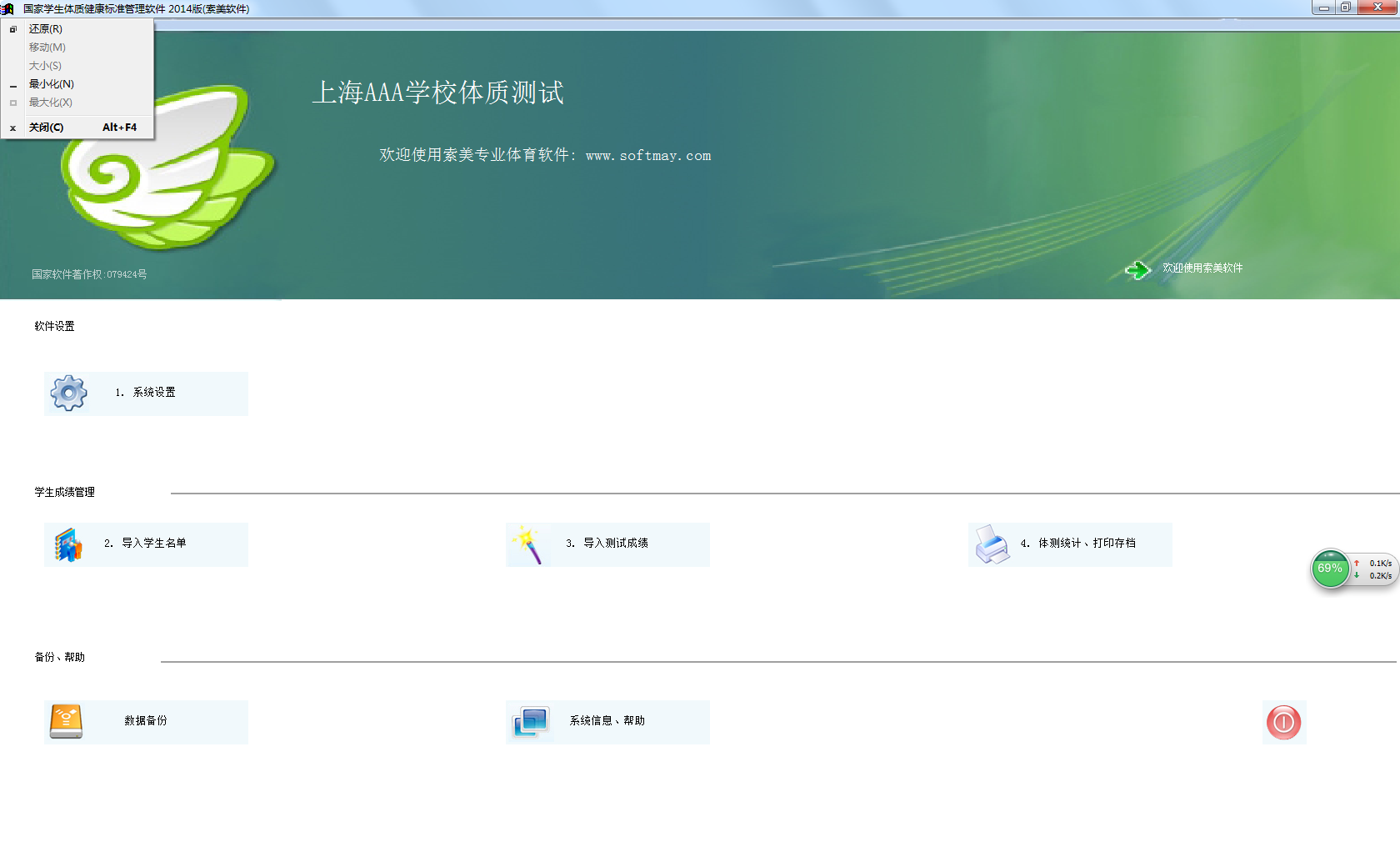 体质健康测试管理软件是一款用于体质健康测试管理软件是一款用于体育课程记录、学生健康测试等方面的信息管理软件,可以快速高效地记录学生体育成绩及健康测试结果,学生的体质数据清晰有条理,使用的时候有很多注意事项,第一次使用时建议保留测试数据用于了解软件的性能怎么样,初始化软件环境会删除所有信息,只有管理员才能进行数据库操作。还提供导入功能,直接导入学生的成绩和测试指标数据。有兴趣的朋友可以下载收藏!
