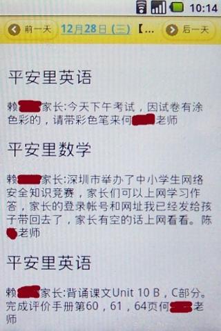 校讯通助手是一款校讯通的辅助工具,软件主要用来显示当天校讯通的信息,利于学生查看当天所有老师布置的作业。