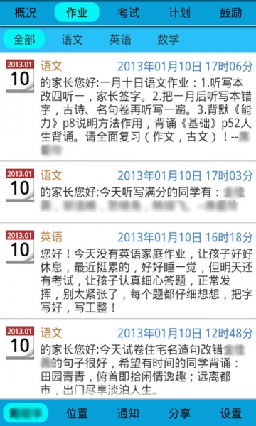 4.让爸爸、妈妈、爷爷、奶奶、叔伯阿姨……,亲朋好友们都能随时了解孩子的学习状况,更多的鼓励能帮助孩子建立自信心