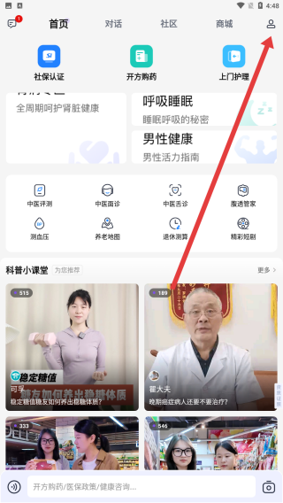 2、在老来网的首页中,可以通过点击右上角人形图标,进行登录操作。