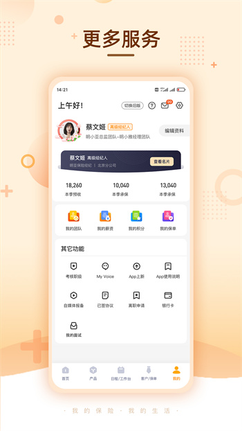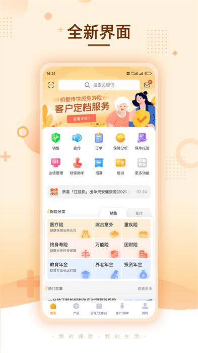 明亚经纪app是针对保险工作人员提供的一款移动办公软件,使用该软件用户可以在线管理客户,了解客户需求并提供针对性的推荐,支持多端同步登陆,信息永不丢失,有效提高工作效率,欢迎来绿色资源网下载!