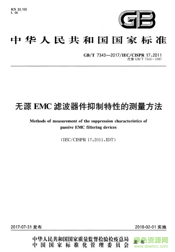 英文标准名称:Methods of measurement of the suppression characteristics of passive EMC filtering devices