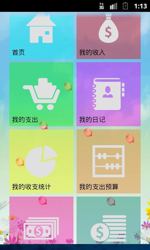 1,首页:您在这里可以看到基本的天气信息,当月,当周,当日的收入支出信息,以及近期你的一些生活动态.同时你在这里可以记收支,写日记,或者赚积分打开新功能.