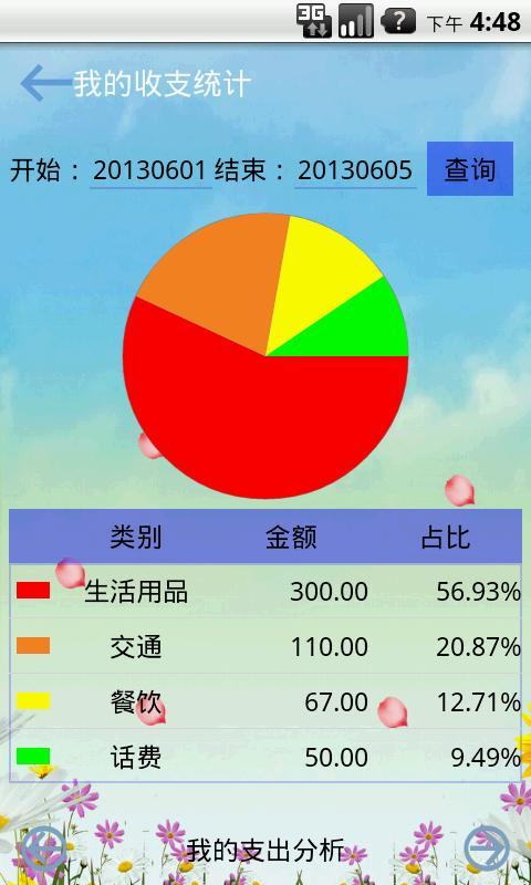 3,我的支出:展示指定日期范围的支出明细,通过列表和表格方式直观的显示您的支出状况!