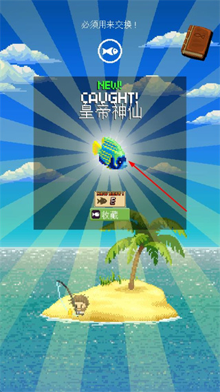 3、成功钓到鱼类后查看捕获提示,获取法国神仙鱼的收获内容。