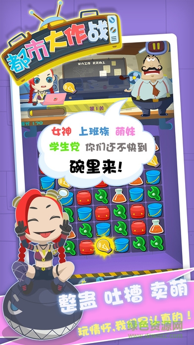 都市大作战是一款让你尽情释放工作压力的消除手游,更有整蛊老板吐槽同事的个性玩法,精美画面和多种职业装扮让你排解压力更舒心,绿色资源网诚意推荐!