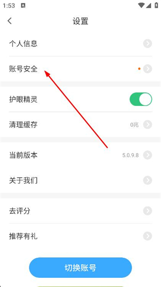 3、进入设置页面后,找到并点击上方账号安全选项。