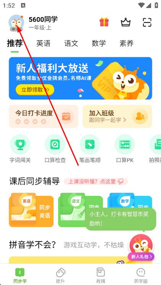 1、打开冀教英语app,点击左上角的头像进入菜单。
