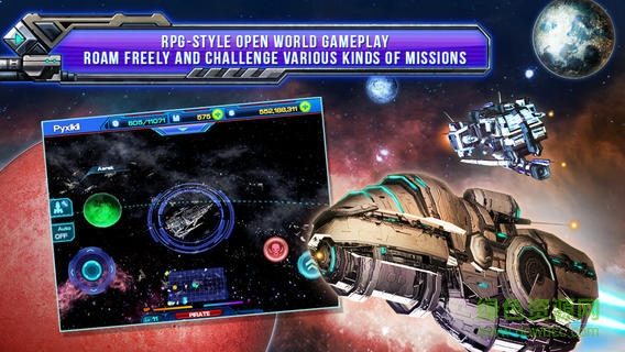 3d射击游戏玩法,融入时下RPG元素。掳掠和贸易是游戏重要经济来源。通过蓝图打造战舰和装备,构成海盗舰队。操作界面近似APPG,触屏摇杆操作。太空中上下飞行颠倒,新接触的玩家一开始会有些不适应。